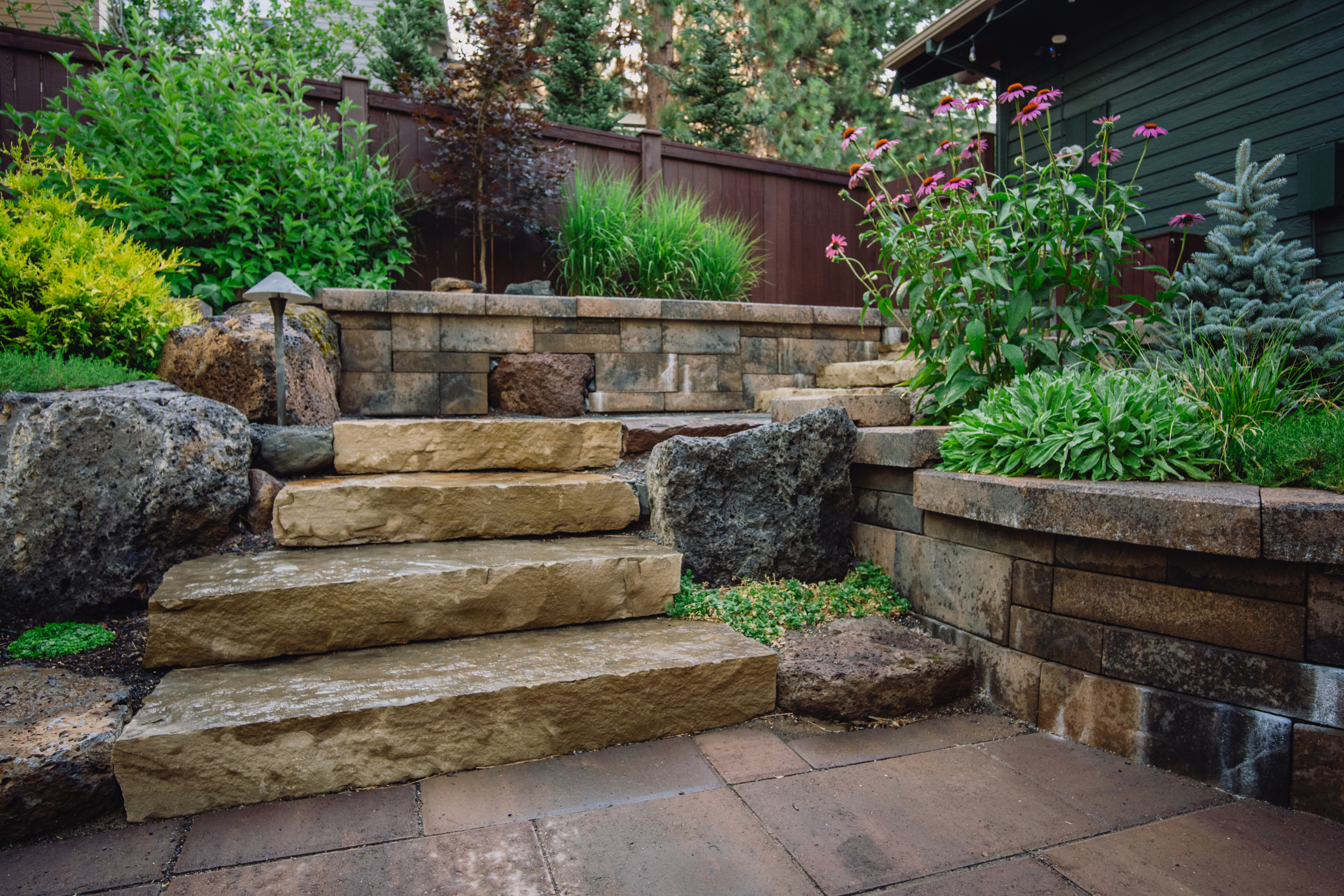Yes. Tanya often incorporates native, drought-tolerant, and pollinator-friendly plants that thrive in Central Oregon’s climate. The goal is always to create a landscape that is both beautiful and ecologically thoughtful.